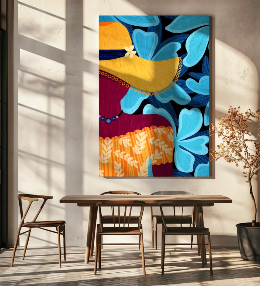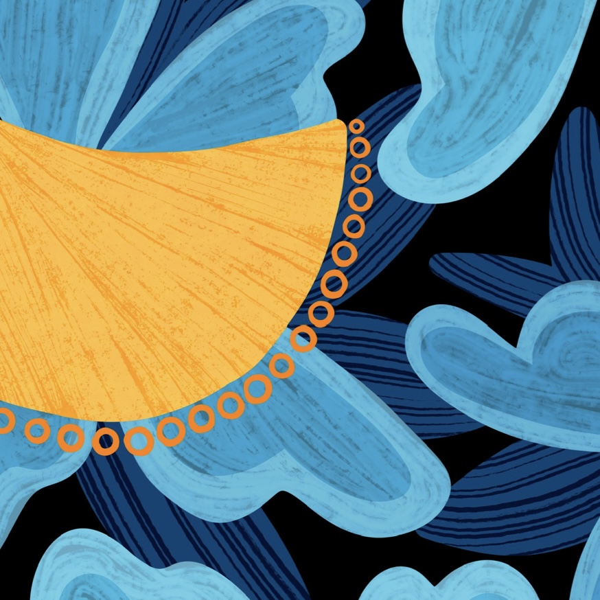 A little something different! This colorful semi-abstract portrait was inspired by the town of Avalon, on Catalina Island. Featuring rich textures and a lush color palette, this work evokes the sunny, relaxed vibe of the island.